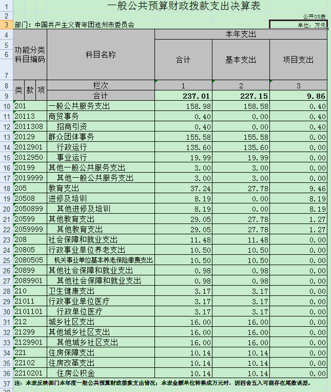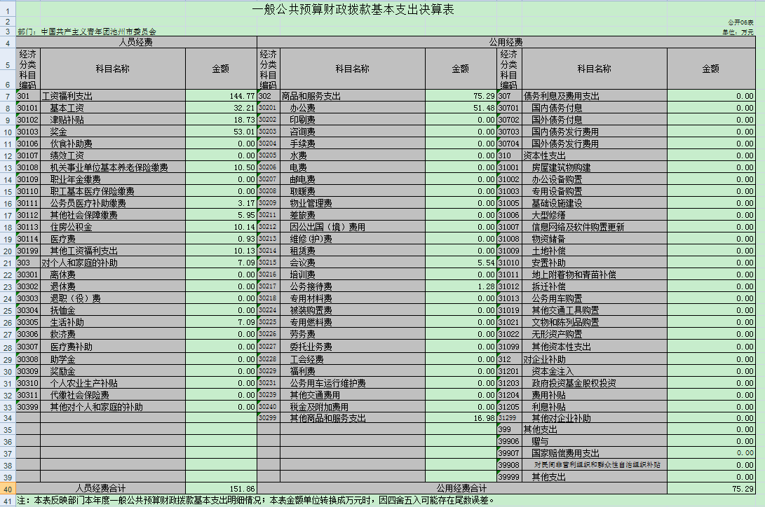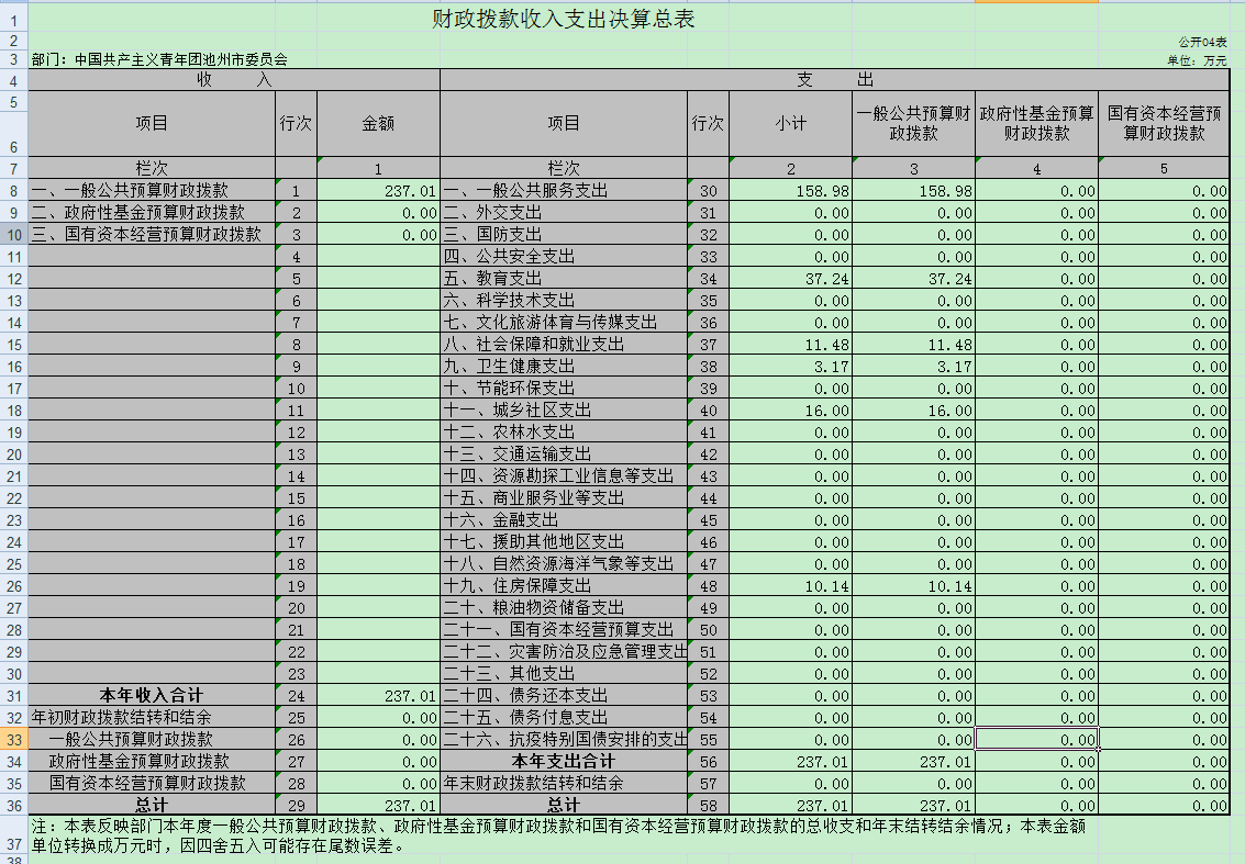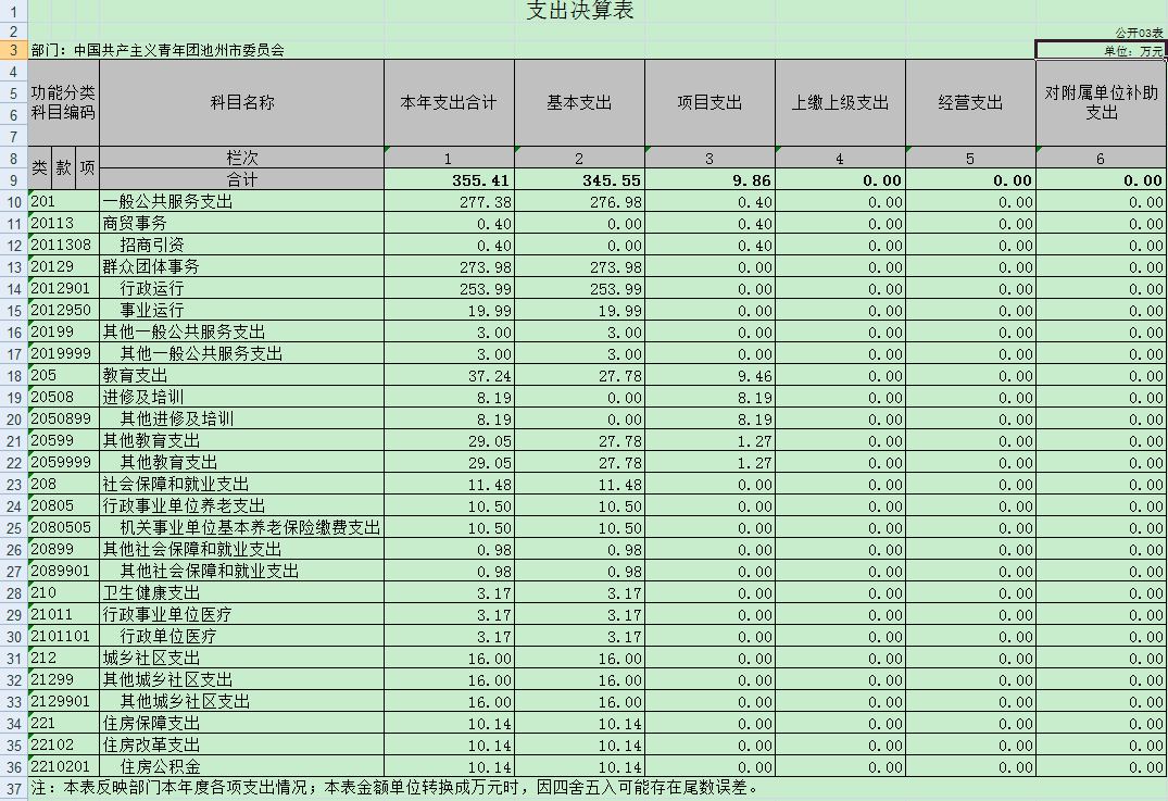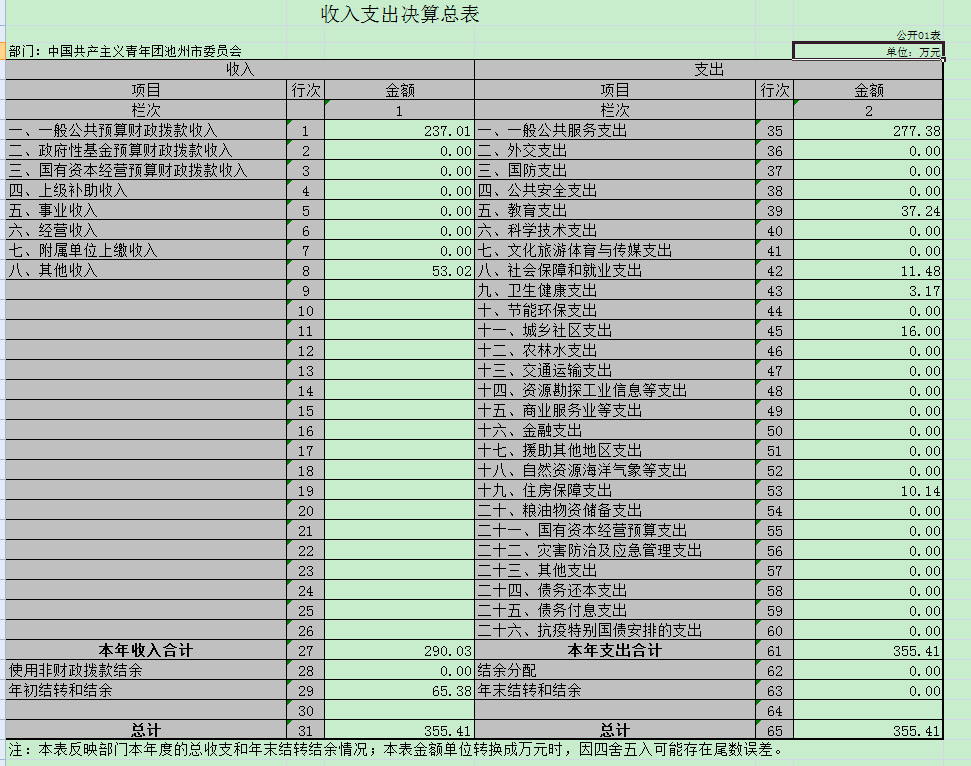 第二部分 中國共產(chǎn)主義青年團(tuán)池州市委員會(huì)2020年度部門決算報(bào)表