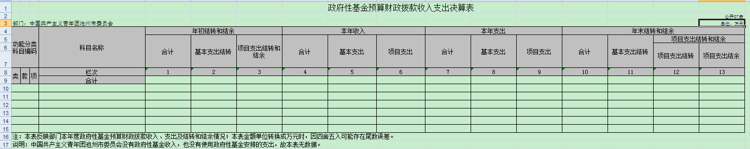 中國共產(chǎn)主義青年團(tuán)池州市委員會(huì)沒有政府性基金收入,也沒有使用政府性基金安排的支出。